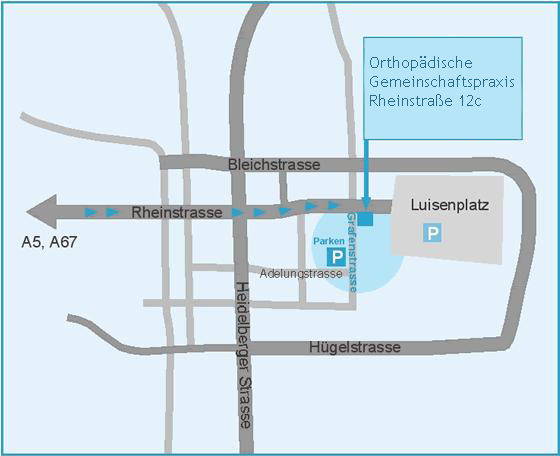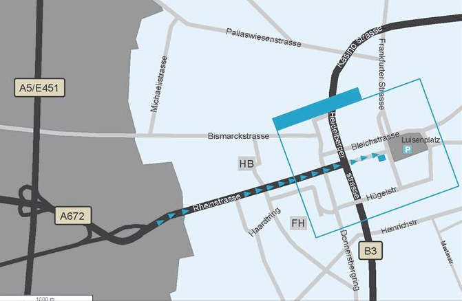 DA - Stadtmitte. Parkplätze finden Sie in der Tiefgarage „Luisencenter“ oder Parkhaus „Grafenstraße“.