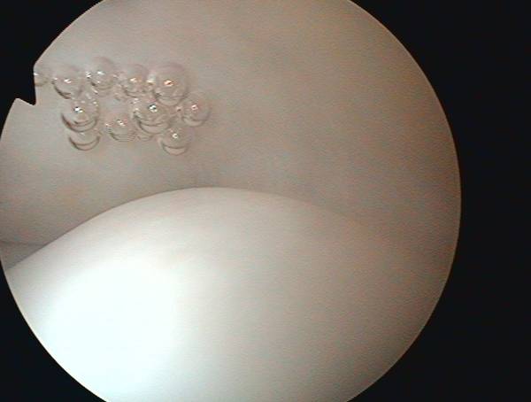 oben: intakte Rotatorenmanschette, unten: gesunder Knorpel des Oberarmkopfes